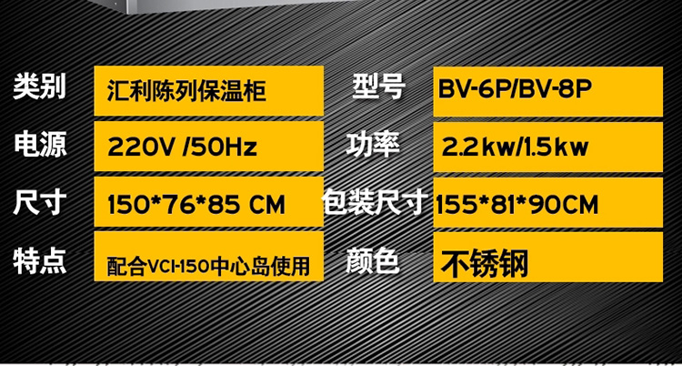 授權(quán)正品匯利 漢堡店設(shè)備 陳列保溫柜BV6P8P 陳列