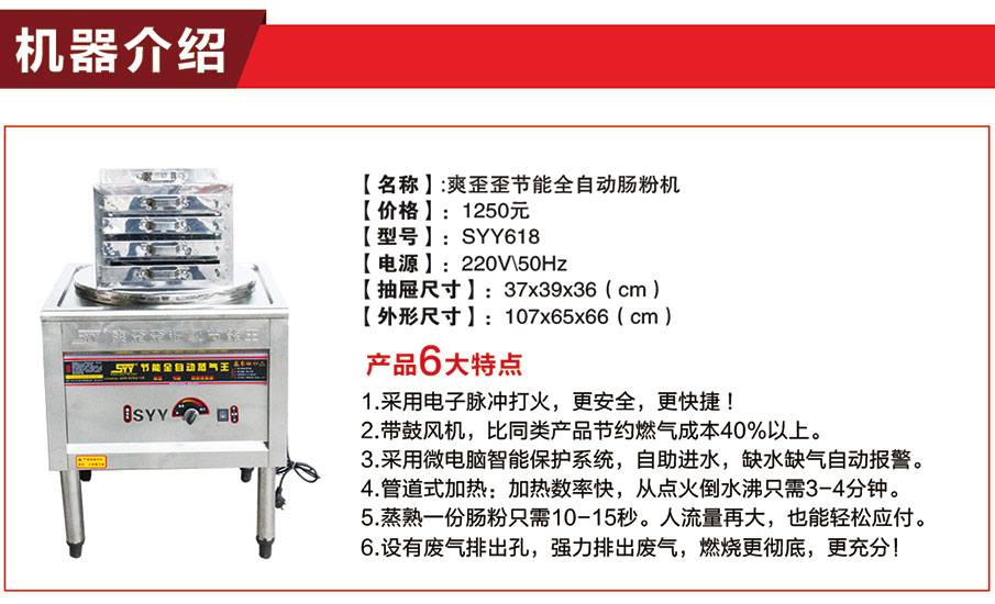 C、第3代方型節(jié)能腸粉機:價格:1000-1500元左右,此產(chǎn)品已被市場認可,技術(shù)成熟,市場隨處可見。