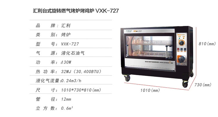 匯利節(jié)能燃?xì)庑D(zhuǎn)烤爐VXK-727全溫型發(fā)酵旋轉(zhuǎn)烤叉